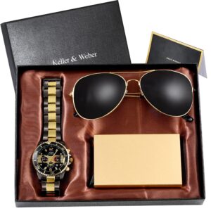 Elegant Men’s Gifts: Designed for men and a beautiful gift for men. Watch, sun glass, card holder with a touch of gold set for every elegant man. The same color set system design highlights the charm of men, designed for every gentleman.