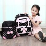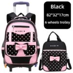 Bowknot Kids Rolling School Backpack 2Pcs Polka Dot Princess Style Trolley Bookbag on Two Wheels