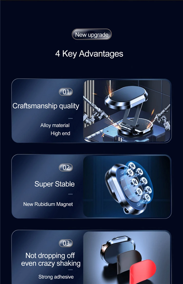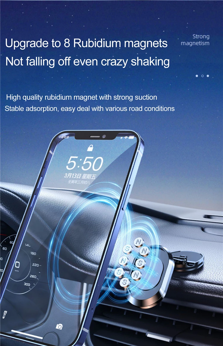 No Charger Feature:The mount is designed without a charger, keeping your phone’s battery life unaffected while driving. - 360 Degree Rotation:Offers a full 360-degree rotation, allowing you to adjust your phone’s viewing angle effortlessly.