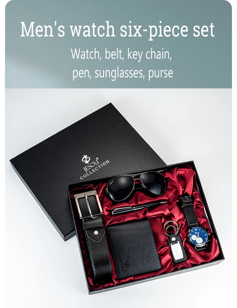 Gift Business Luxury Company Mens Set 6 in 1 Watch Glasses Pen Keychain Belt Purse Welcome Holiday Birthday