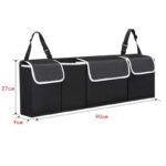 Our trunk organizer is made of premium 600D PVC fabric cloth, which is durable, stable and waterproof. There are 3 large pocket and a bottle holder with unique hanging design. Straps are strong, you don’t need to worry about organizer falling down due to the heavy item. Like road traveling? This is an essentials on the road trip. Put anything you need in the organizer and you can find them easier and quicker.A great addition to your car trunk.