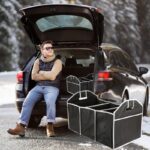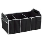 . This collapsible trunk organizer has three large sections that can hold sports gear, backpacks, books, groceries or safety items.