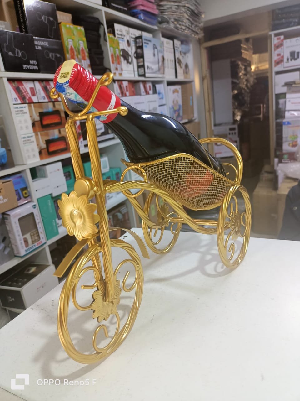 Showcase your wine in style with our Golden Bicycle Wine Rack, a unique blend of elegance and creativity. Designed in the shape of a vintage bicycle, this wine holder doubles as a stunning home décor piece while securely holding your favorite bottle of wine.
