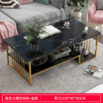 Coffee Tables Modern Rectangular Coffee Table Home Office with Artificial Marble Table Top and Golden Metal Frame