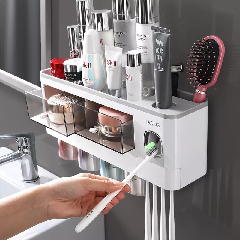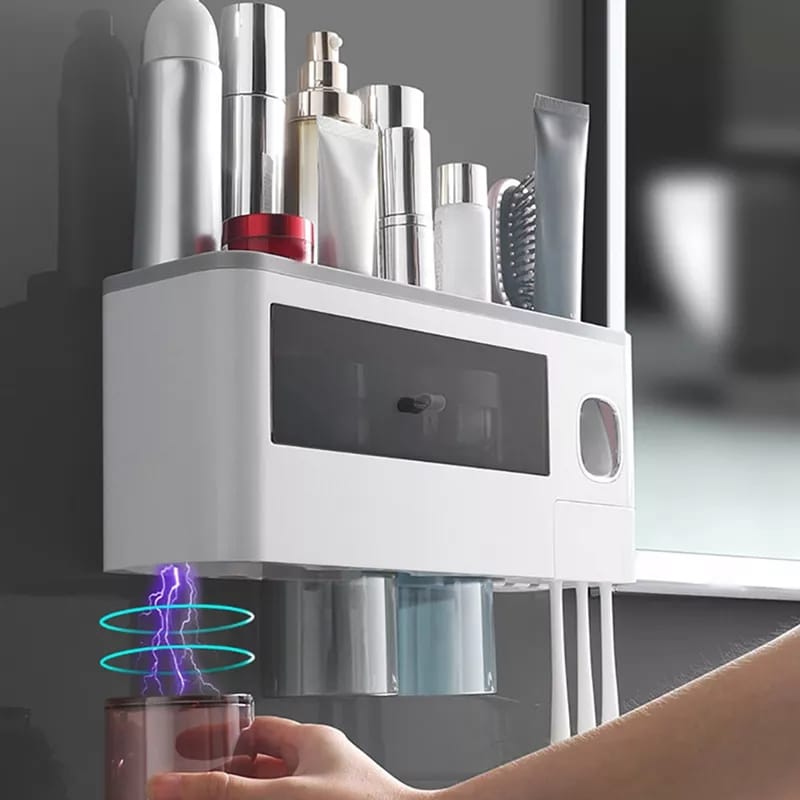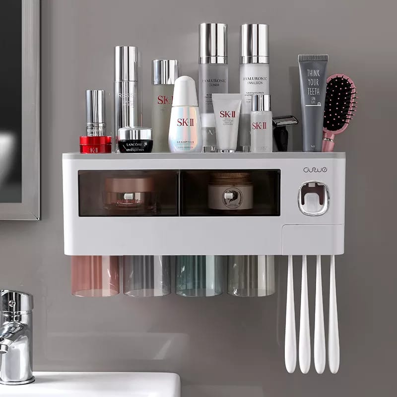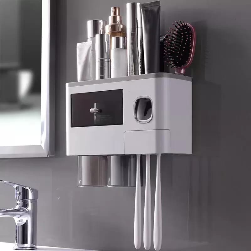 Bathroom Accessories Set Magnetic Adsorption Inverted Toothbrush Holder Automatic Toothpaste Dispenser Squeezer Storage Rack
